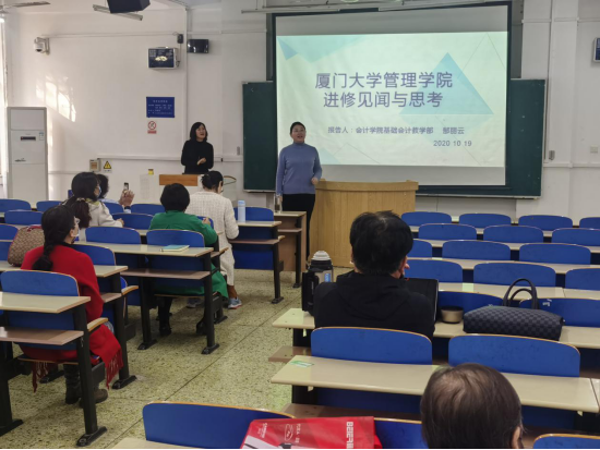 2020年10月19日下午,由教学评估与教师教学发展中心主办,beat365中文官网承办的教学沙龙活动,在北三教B101教室顺利召开。beat365中文官网郜丽云副教授做了“厦门大学管理学院进修见闻与思考”分享交流。来自beat365中文官网、财税学院、数统学院等60多名教师参加了教学沙龙活动,本次活动由杨国莉副院长主持。