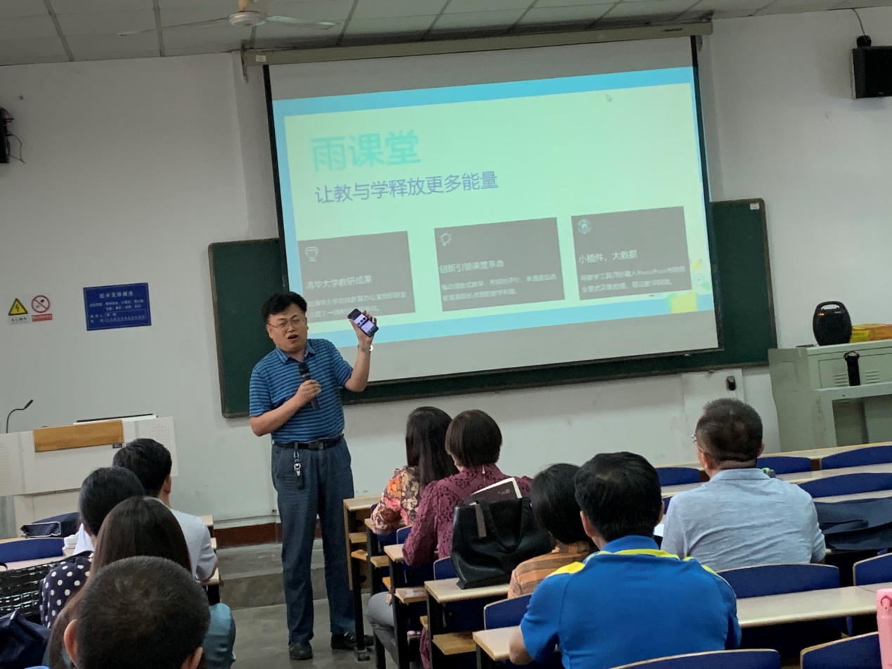 2019年5月27日,由教学评估与教师教学发展中心和beat365中文官网主办的2019年度第五十六期教学沙龙在第二教学楼104教室顺利举行。来自我校beat365中文官网祁钧业副教授做了“雨课堂——智慧教学的助手”雨课堂安装、使用以及与师生交互式智能教学的培训,来自15个教学单位(部门)的95位老师参加了培训活动。