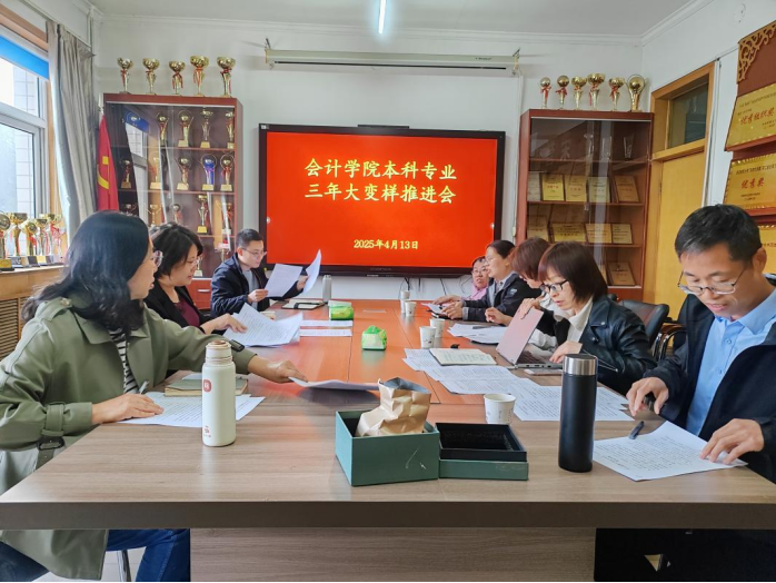 李西文传达了学校《关于报送高校学科专业调整优化“三年大变样”行动方案等材料的通知)的文件精神,对专业调整优化工作进一步明确建设任务、目标和要求,要求各系团队就专业建设思路多交流配合,共同探索优化方向。刘海云带领参会人员详细讨论了各系部提交的“三年大变样”建设思路方案,并给出修改意见。系部书记和正副主任就会计系、审计系、财务管理系的建设思路分别进行了汇报,并就数字融合、师资队伍建设等方面存在的问题和解决方法进行了交流,会议持续两个小时。