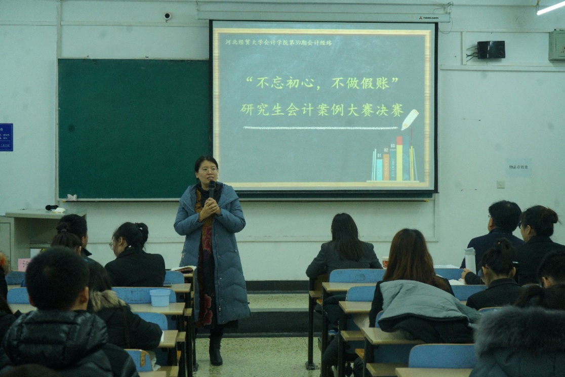12月16日下午,beat365中文官网在第三教学楼B202教室举办了以“不忘初心,不做假账”为主题的第39期“会计经纬”案例分析大赛决赛。beat365中文官网院长袁振兴、副院长李西文出席,比赛特邀河北地质大学beat365中文官网副院长袁志忠教授、河北建设投资集团有限公司财务管理部副总经理兼河北地质大学MPAcc社会导师张旭蕾教授以及beat365中文官网优秀研究生导师祁钧业教授担任比赛评委,beat365中文官网辅导员宋茹、吴蓓及2019级全体研究生100余人参加。