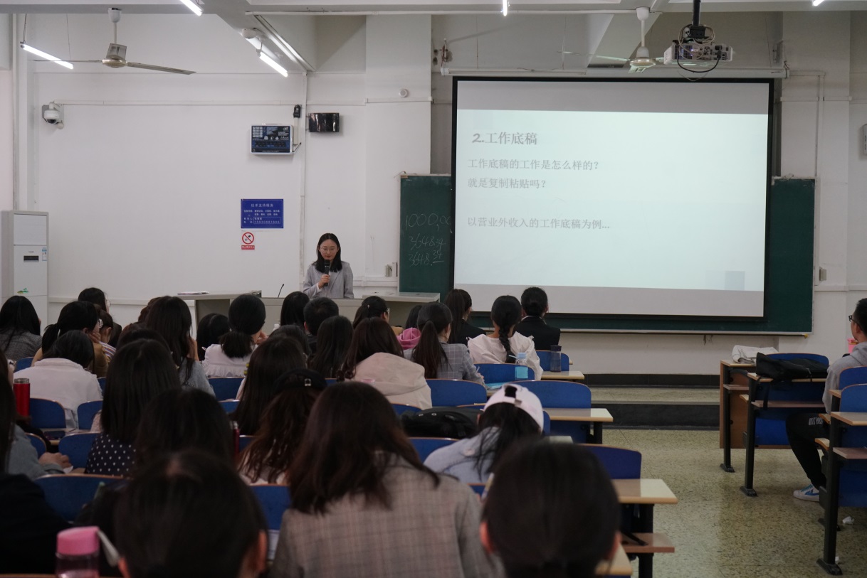 李桂荣对活动进行了总结,指出实习的目的是为了更好地适应社会,在以后的学习生活中养成反思的良好习惯,学会与他人分享自己的心得体会,并勉励同学们提高对知识融通运用的意识和能力,并在实践中关注会计行业的发展动态,拓展视野,提高综合能力,为学习后续课程明确目标,为将来走向社会打下坚实的基础。