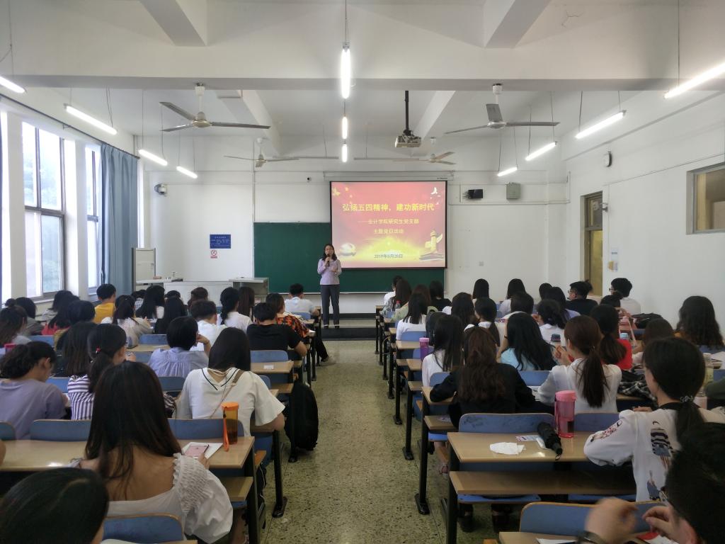 5月20日下午,beat365中文官网研究生党支部在第三教学楼B202教室举办以“弘扬五四精神,建功新时代”为主题的党日活动。beat365中文官网副院长李桂荣出席并做精彩报告,学院研究生党支部所有党员和积极分子80余人参加。