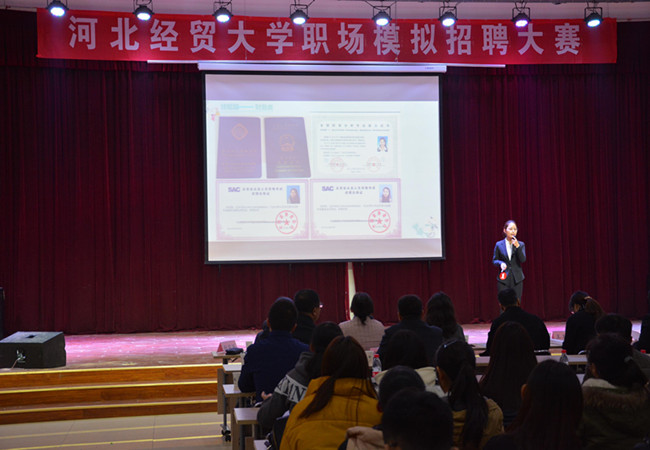 11月27日下午,beat365中文官网第六届职场模拟招聘大赛决赛在大学生活动中心3号厅圆满落幕。财政税务学院党委副书记郑颖、学校就业指导中心就业指导科科长赵丽丽、上市公司搜才人力核心业务总监魏建艺、石家庄昱德企业管理咨询有限公司总经理及教练导师闫亮、石家庄哲科生物科技有限公司总经理李晓莉、石家庄钦园俱乐部有限公司总理赵仓园、中交远洲交通科技集团有限公司人力资源部经理王玉景受邀担任评委,beat365中文官网党委副书记王继伟、商学院党委副书记董爱民作为嘉宾出席活动。