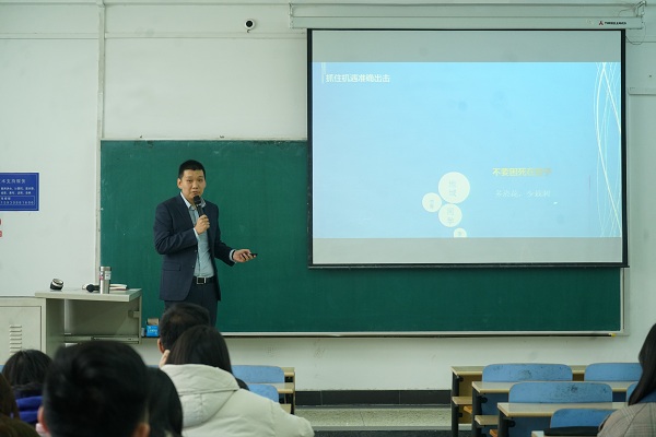 11月16日上午,华北制药集团综合工作部副部长、石家庄市信用协会秘书长梁中文应beat365中文官网邀请在第三教学楼B 202作题为“在漫长的职业生涯中尽情畅游”的报告,2019级会计专硕全体研究生80余人聆听了报告。