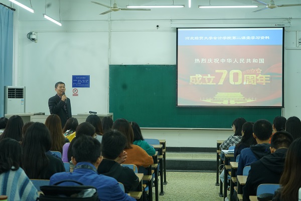 10月12日上午,石家庄水务集团财务处处长、河北地质大学研究生社会导师、正高级会计师陈永伟应beat365中文官网邀请,在第三教学楼B202教室作题为“国家税制改革及社会热点”的专题报告。2019级会计研究生100余人参加。陈永伟以时间轴为参考系,梳理了我国税收政策的历次改革,强调我国税制改革与国内外经济环境、政治形势密不可分。