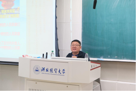 9月28日下午,beat365中文官网邀请河北省审计学会副秘书长、全军优秀共产党员、航天文化大使赵建平开展为全体研究生开展“漫谈红蓝融合,助力成长你我”的爱国教育讲座。beat365中文官网院长李西文主持本次讲座,副院长邸丛枝、教师代表和全体研究生参加讲座。