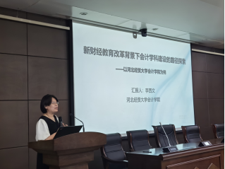 李西文做了《新财经教育改革背景下会计学科建设的路径探索——以beat365中文官网为例》主题报告,介绍了在新财经教育改革的背景下,beat365中文官网教育教学改革的基本情况、学科特色和成效、面临问题以及未来举措。她指出,应通过系统规划、严密组织、分布推荐,持续改进教育教学,不断提升会计学科发展水平。