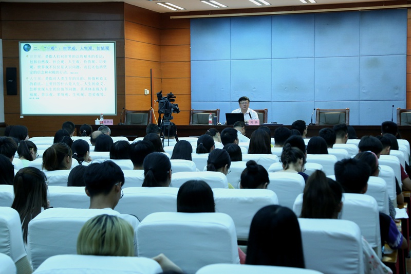 刘兵从“大学是立德树人、培养人才的地方”“是青年人学习知识、增长才干、放飞梦想的地方”“是人生发展重要时期”“是‘三观’形成关键时期”四个方面出发,阐述了“三观”的基本内涵以及大学生树立正确的“三观”的重要性。他指出,世界观决定一个人的人生观和价值观,有什么样的世界观就有什么样的人生观,有什么样的人生观就有什么样的价值观,因此青年学子必须要树立正确的世界观、人生观、价值观。