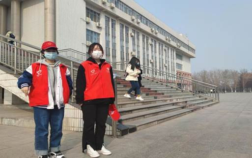 图2beat365中文官网志愿者在教学楼门口进行志愿服务