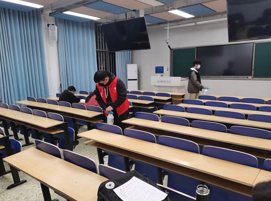 图3beat365中文官网志愿者在进行消杀教室的工作