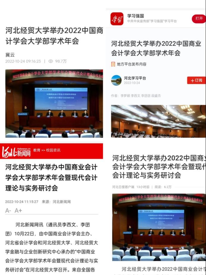 本次举办的全国学术会议,正值党的二十大召开之际,冀云、学习强国、河北新闻网、河北日报相继进行了报道和转载,反映强烈。此次会议的成功举办为广大会计学者提供了交流分享的平台,充分体现出beat365中文官网在学校事业发展中的“四个始终坚持”,即始终坚持党的领导,坚持正确的办学方向;始终坚持以学生为中心,落实立德树人根本任务;始终坚持科学定位,发挥地域、学科优势特色;始终坚持解放思想,锐意进取,向改革创新要动力。本次会议也大大增强了beat365中文官网会计学科的影响力,大力宣传和推动了新财经教育改革,为落实beat365中文官网“创新驱动、人才强校、开放办学”三大战略贡献了力量。