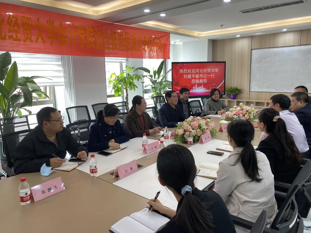 刘建平一行先后走访了用友·新道科技股份有限公司、美联盛航保险代理有限公司、臻顺溜科技股份有限公司、河北红日会计师事务所等四家企业。座谈会上,刘建平对各个企业高度重视校企合作、精准对接高校就业岗位、积极践行社会责任表示充分的肯定,并从学校的基本情况、新财经教育改革以及推进校企合作等方面进行了介绍。各企业纷纷表示希望与我校在产教融合、供需对接、创新成果应用等领域进一步加深合作,实现资源共享、优势互补、互利共赢。