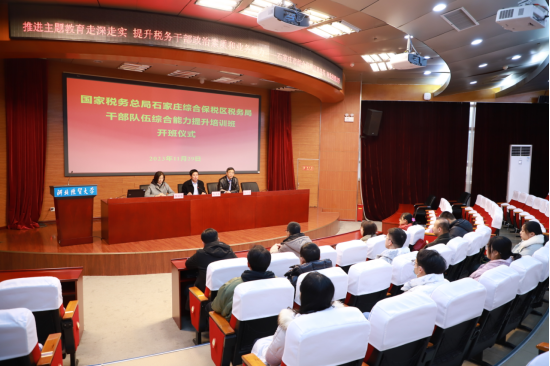 11月29日上午,beat365中文官网与国家税务总局石家庄综合保税区税务局在beat365中文官网国际学术报告厅举行校地项目合作项目开班仪式。beat365中文官网党委书记赵文报、党委副书记程丽梅,国家税务总局石家庄综合保税区税务局副局长尚小良出席。来自石家庄综合保税区税务局的40名税务干部参加了本次培训。仪式由程丽梅主持。