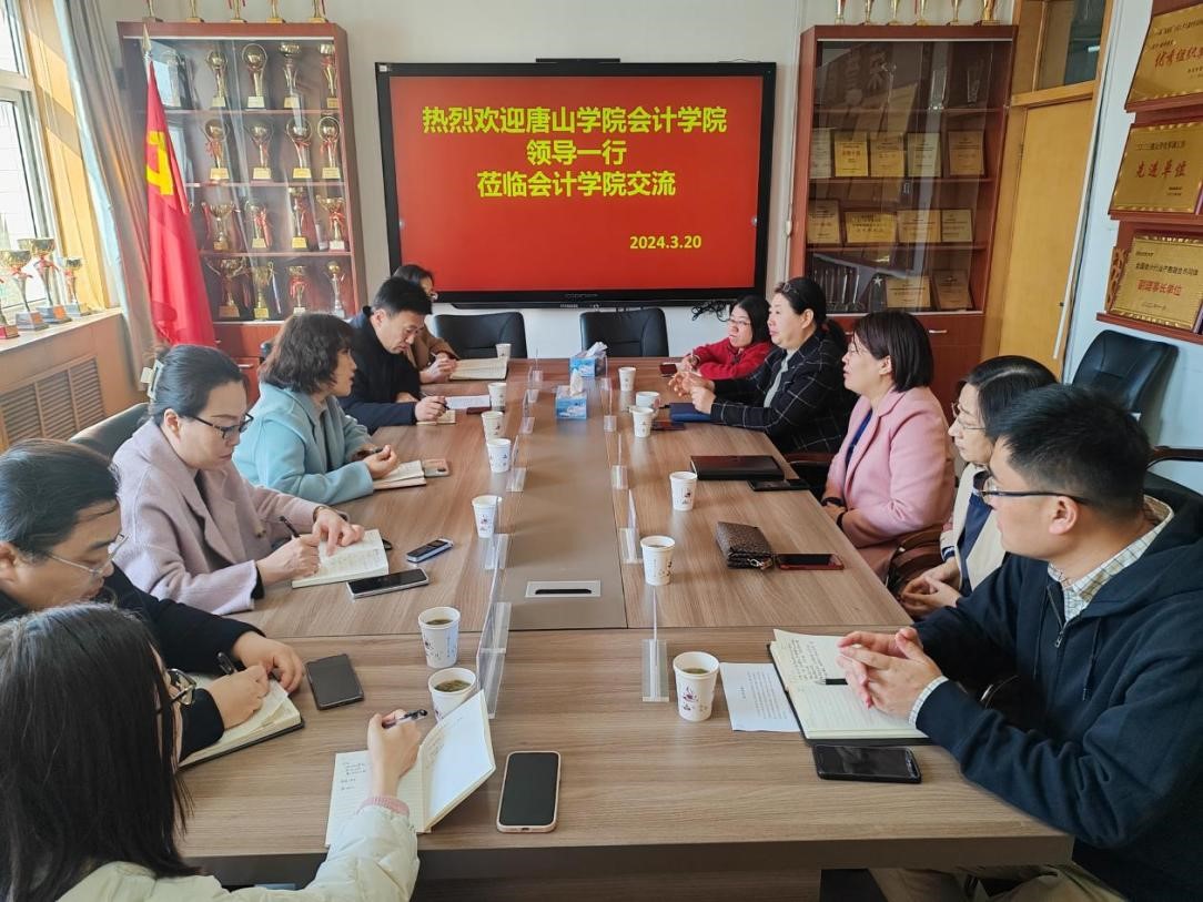 3月20日上午,唐山学院beat365中文官网院长刘阳、副院长赵敏、系主任马晨佳、系主任孙佳勇、专业负责人李凤、教师田雨绯一行六人到beat365官网交流调研,beat365中文官网李西文院长、杨国莉副院长在4办308会议室接待,会计学、审计学、财务管理专业三名专业负责人参与此次活动。