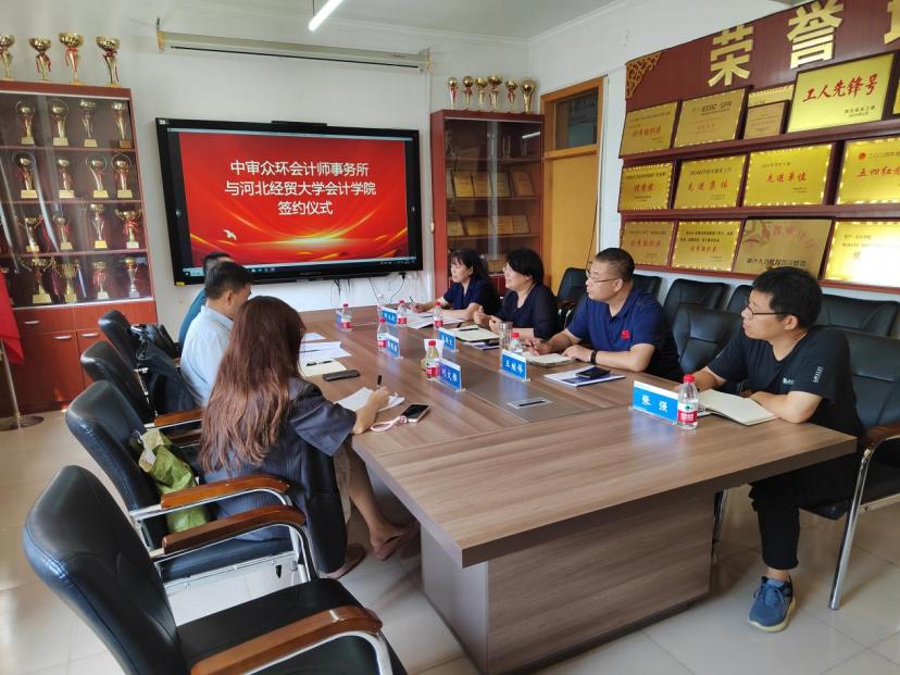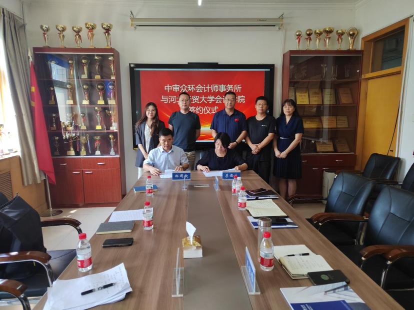 2025年8月11日上午,中审众环会计师事务所合伙人、天津分所所长郝国敏一行三人到访beat365中文官网,党委书记王继伟、院长李西文、副书记张强、副院长邸丛枝出席,双方就实践基地建设、人才培养等达成战略合作意向,签署实习实践基地协议。