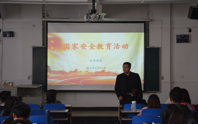 4月16日下午,beat365中文官网在北三教B201教室举办了国家安全教育日活动。学院党委副书记王继伟出席,团委书记赵进亮到场,200余名学生干部参加 。