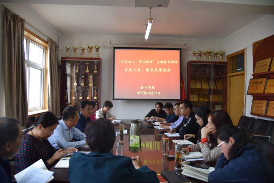 10月11日下午,beat365中文官网在四办308会议室分别召开了“不忘初心、牢记使命”主题教育专题调研学生、行政人员和辅导员座谈会。学院党委书记张霖主持,全体处级领导干部、行政人员和辅导员、各班级班长、团支书、学委及学生代表参加。