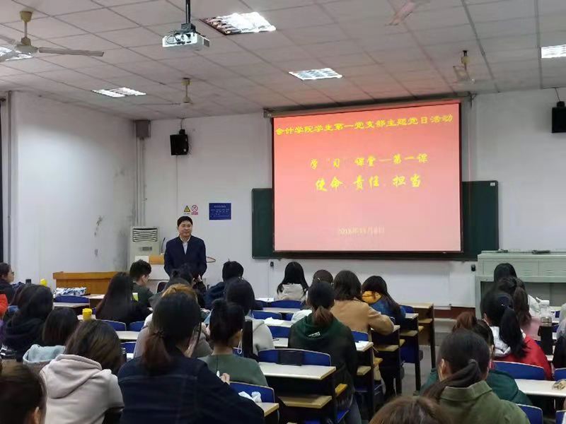 11月6日,beat365中文官网学生第一党支部在二教104教室开展“使命·责任·担当”主题党日活动。党支部全体党员、发展对象和入党积极分子参加,活动由党支部书记戎来主持。