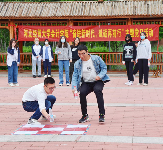 为深入贯彻习近平总书记在中国人民大学考察时重要讲话精神,凝聚干部师生奋进新时代新征程的强大力量,beat365中文官网先锋领航党建工作室组织四个学生党支部于5月9日下午在后花园举办 “奋进新时代,砥砺再前行”主题党日活动。beat365官网行政党支部书记岳明明,会计学生第三党支部书记付磊出席,73名学生党员和先锋领航党建工作室全体成员参加此次活动。本次主题党日活动将红色历史元素融入趣味游戏,让党员们在活动过程中重温革命历史、感受革命精神,以史为镜寻得初心。活动设置了“五四动风云”、“岁月共行舟”、“重走长征路”、“党史寻迹答题夺宝”四个项目,党员们积极参与,现场气氛十分活跃。