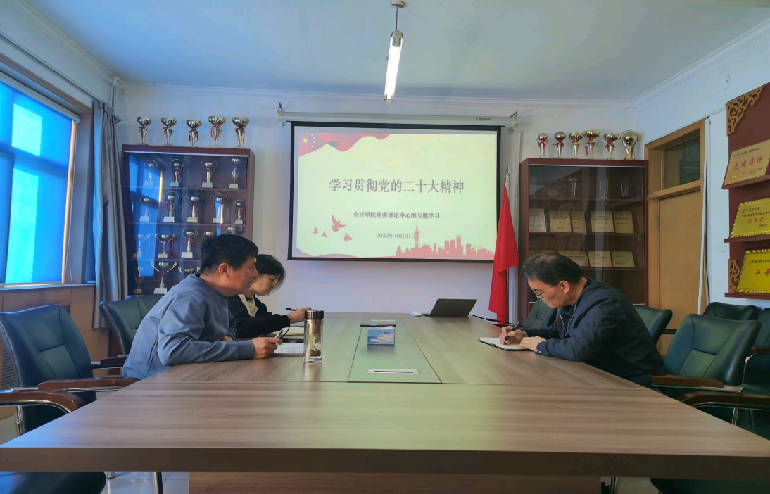 在党的二十大胜利召开之际,为深入学习党的二十大精神,筑牢思想根基,坚定理想信念,发扬党的精神风貌,beat365中文官网党委理论学习中心组于2022年10月31日下午进行“贯彻党的二十大精神”专题学习。院党委书记赵文报主持学习并讲话、院党委副书记程丽梅、院办公室主任赵立强参加学习。