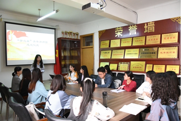 4月15日下午,beat365中文官网在四办308会议室举行“梦之翼”青年讲师团成立仪式。学院党委副书记程丽梅出席,学院团委骨干以及青年讲师团成员参加。