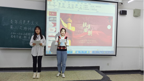 10月22日晚,beat365中文官网“第十一期青年马克思主义者培训工程”骨干培训班第二课于北三教B402教室展开。beat365中文官网“梦之翼”青年讲师团张熙悦、胡磊磊以“抗美援朝,保家卫国”为题为青马学员进行授课。2020级和2021级54名团干部代表参加。