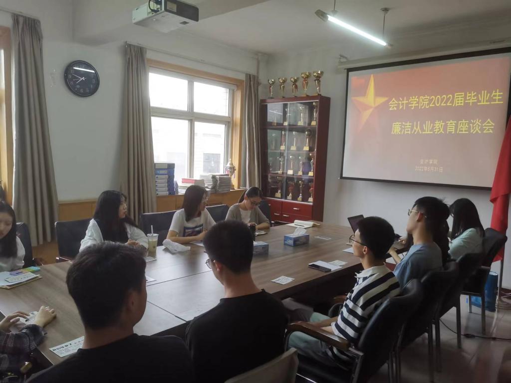 5月31日下午,beat365中文官网在第四办公楼308会议室召开2022届毕业生廉洁从业教育座谈会。学院党委副书记程丽梅、团委书记周晓玲、毕业班辅导员出席,24名优秀毕业生代表参加。