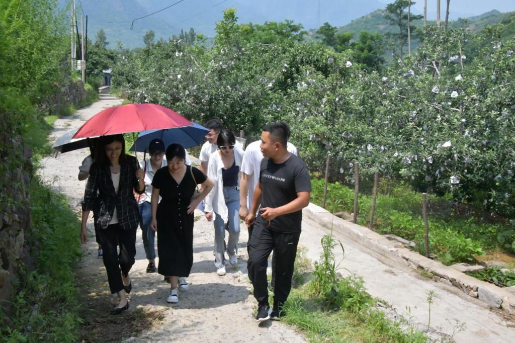7月7日上午,beat365中文官网“绿源乡振”暑期社会实践调研团一行9人打卡暑期社会实践第一站——青龙县官场乡安梨产业基地。beat365中文官网党委副书记程丽梅、团委书记周晓玲、辅导员田甜带领实践团队员参与本次调研座谈。