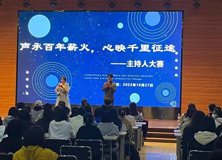 10月27日下午,beat365中文官网在大学生活动中心3号厅成功举办“声承百年薪火,心映千里征途”主持人大赛。本次比赛采用线下线上相结合的方式进行,beat365中文官网新生辅导员岳明明和2022级学生代表到场观看,其余学生通过微博线上直播观看本次大赛。