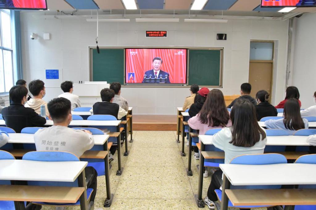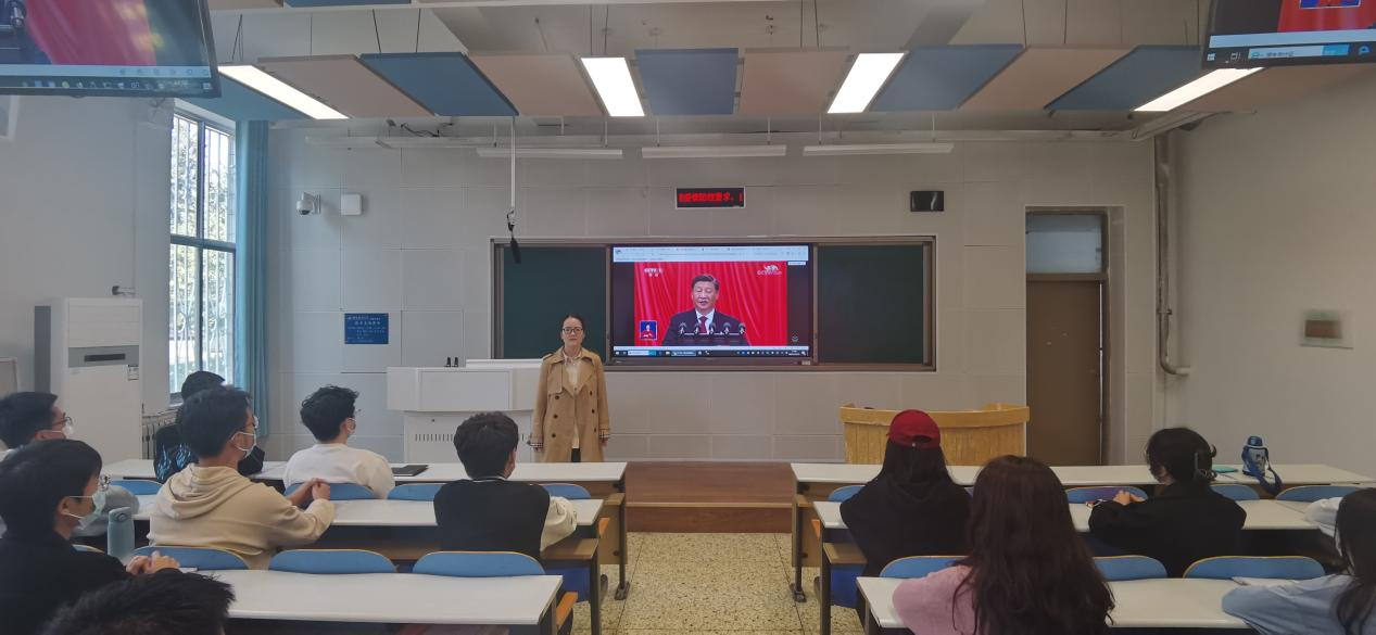 除北三教A107集中观看外,beat365中文官网各团支部在团支书带领下自行分散观看中国共产党第二十次全国代表大会开幕式,共同学习大会精神,深入学习党的二十大具体内容。