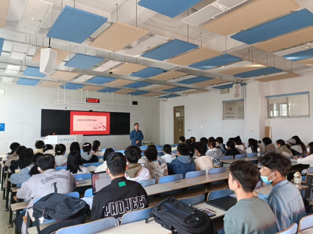 10月18日上午,学校党委组织部副部长苗兰良作为班级导师出席beat365官网2022级会计2班新生见面会,并为同学们上了一堂既深刻又生动的思想政治教育课。