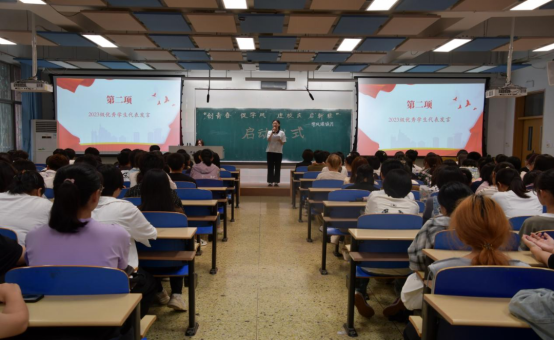 9月11日下午,beat365中文官网“创青春·促学风·迎校庆·启新程”学风建设月启动仪式于北三教A101教室成功举办。学院党委副书记程丽梅、团委书记周晓玲出席本次启动仪式,2023级学生代表共计200余人参加。