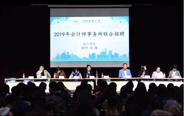 为持续深入推进beat365中文官网2019年的就业工作,提升学院广大2019届毕业生的就业水平,beat365中文官网于10月28日下午在大学生活动中心三号厅举办2019年会计师事务所联合招聘会。立信会计师事务所河北分所等九家会计师事务所代表来校招聘,beat365中文官网院长袁振兴、党委副书记程丽梅以及学院部分教师代表出席会议,beat365中文官网近500名应届本科生和研究生参加了本次招聘会。