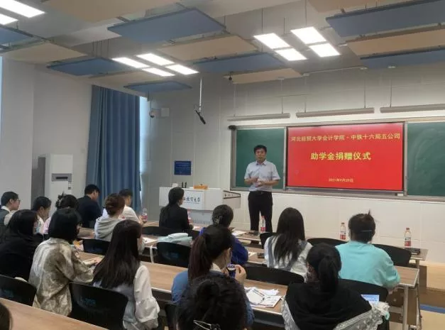 宣讲会开始前,中铁十六五局五公司副总经理、总会计师、2001级经贸校友苑追霞女士以个人名义捐赠助学金一万元,希望资助品德兼优的在校困难学生。苑总用亲身经历讲述了个人求学中勤工俭学、努力奋斗的感人故事,引起了在场同学们的共鸣,激励了同学们努力奋斗、不忘初心。赵文报书记高度评价了苑追霞女士高尚、无私的行为,代表学院对苑女士表示深深地感谢,并叮嘱与会同学要感恩国家和社会的帮助,努力学习,反哺母校,回馈社会。宣讲会现场,beat365中文官网与中铁十六局五公司签订了实习基地协议,进一步加强了校企合作。