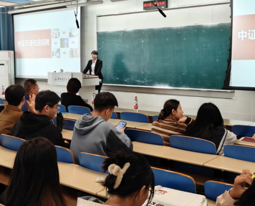 招聘会上,赵少蕊围绕公司的基本情况、业务内容、人员构成、公司待遇、人才培养等方面做了详细介绍。随后,公司人力资源部孙丽经理结合自身工作经历分享了会计师事务所的行业地位与特点、招聘对象的能力及素质要求,并回答了参会同学关注的实习时长、工作内容、入职待遇等问题。程丽梅书记最后做总结发言,她对中证天通会计师事务所本次来校招聘表示欢迎与感谢,她指出,会计师事务所是财会学生职业发展的“加速器”,事务所业务与学生所学专业知识结合紧密、涉及业务范围较广,能够常学常新,对学生专业成长与发展很有帮助。她指出学生的职业选择与发展要立足自身,做出最适合自己的选择。宣讲会结束后,招聘人员收集了参会同学的简历并进行了面试,与部分同学达成签约意向。