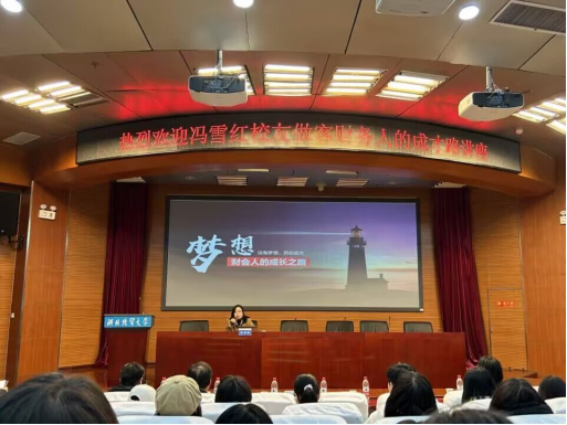 11月16日下午,beat365中文官网在国际学术报告厅举办“财务人的成才路”就业指导讲座,beat365中文官网优秀校友、河瑞瑞桉(河北)税务师事务所有限公司法人、总经理兼财务总监冯雪红任主讲嘉宾,beat365中文官网党委副书记程丽梅及全体辅导员出席,beat365中文官网200余名学生代表参加。