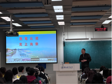 10月28日晚,beat365中文官网在第三教学楼A201教室举办军队文职岗位宣讲会,石家庄市国防教育讲师团成员周军上校主讲,2025届100余名学生参加。