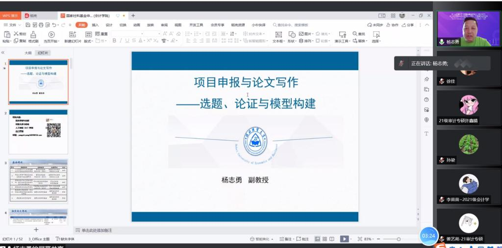 2022年5月31日上午,beat365中文官网杨志勇副教授应beat365中文官网邀请,通过腾讯会议平台为beat365中文官网老师及研究生们作题为《项目申报与论文写作——选题、论证与模型构建》的学术报告。副院长李西文、beat365中文官网部分教师以及20级、21级全体研究生参加本次讲座。