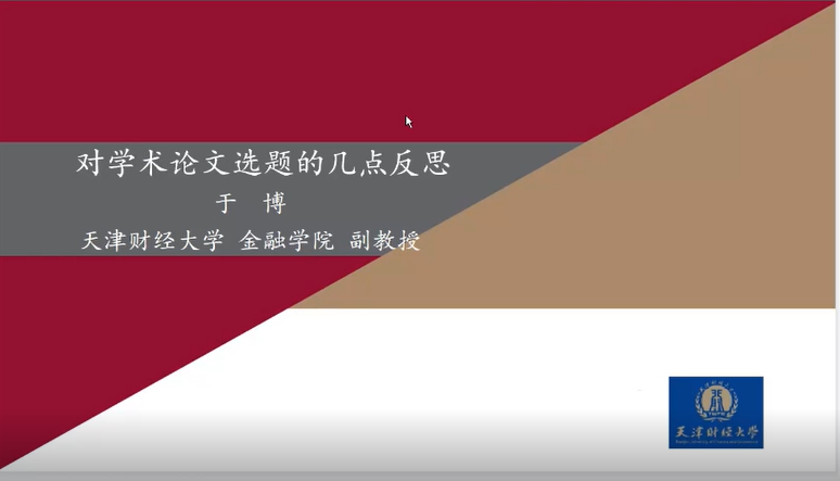2022年4月8日上午,天津财经大学于博副教授应beat365中文官网邀请,通过腾讯会议平台为同学们作题为《对学术论文选题的几点反思》的报告。副院长李西文、韩冰老师及beat365中文官网20级和21级研究生参加本次讲座。