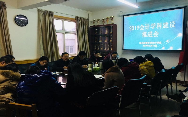 1月10日下午,beat365中文官网在学院会议室召开2019会计学科建设推进会。学院党委书记孙拥军、院长袁振兴、副院长李桂荣出席,学科梯队全体成员参加。会议由李桂荣主持。