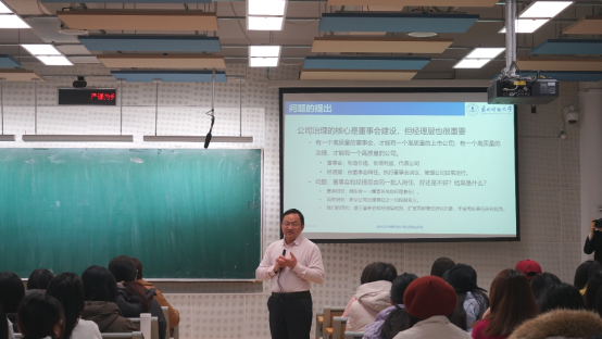 报告伊始,孙教授简要了解到场学生的培养方式,针对性调整讲座内容,做到因材施教。他认为实证研究与案例研究没有绝对区分,核心是要培养学生从现象看本质。报告过程中,孙教授首先从当前中国公司治理现状切入,逐步铺垫,带领在场师生思考董事与经理兼任的公司治理效应这一研究话题。孙教授的讲解层层递进,从研究框架出发,为师生们打开思路。孙教授立足不同视角的研究文献,结合公司治理体系深挖内在关联,加深同学们对选题与撰写的逻辑体会。
