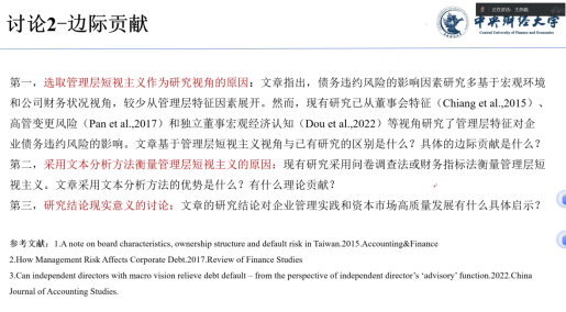 首先,王教授结合自身学术写作与审稿经验阐述对于优秀选题的看法,并概括为“三个基于”:一是基于文献,沿着理论发展选题;二是基于制度,围绕制度变迁选题;三是基于实践,围绕经济实践选题。其次,王教授点明在确定研究方案时需先明确问题的本质,发掘现象背后的内在规律,进行内在效度思考。同时他指出理论张力问题不能浮于表面,要深入探究理论是否深刻,预期研究高度能否达到。通过排除替代解释,采用因果识别的基本计量方法避免在选题时出现本末倒置问题。最后,王教授以列夫·托尔斯泰的箴言与到场师生共勉:人生的价值,并不是用时间,而是用深度去衡量的。与会师生认真聆听,切实感悟在时事热点与内在深度的衡量中发掘契合的选题尤为关键。